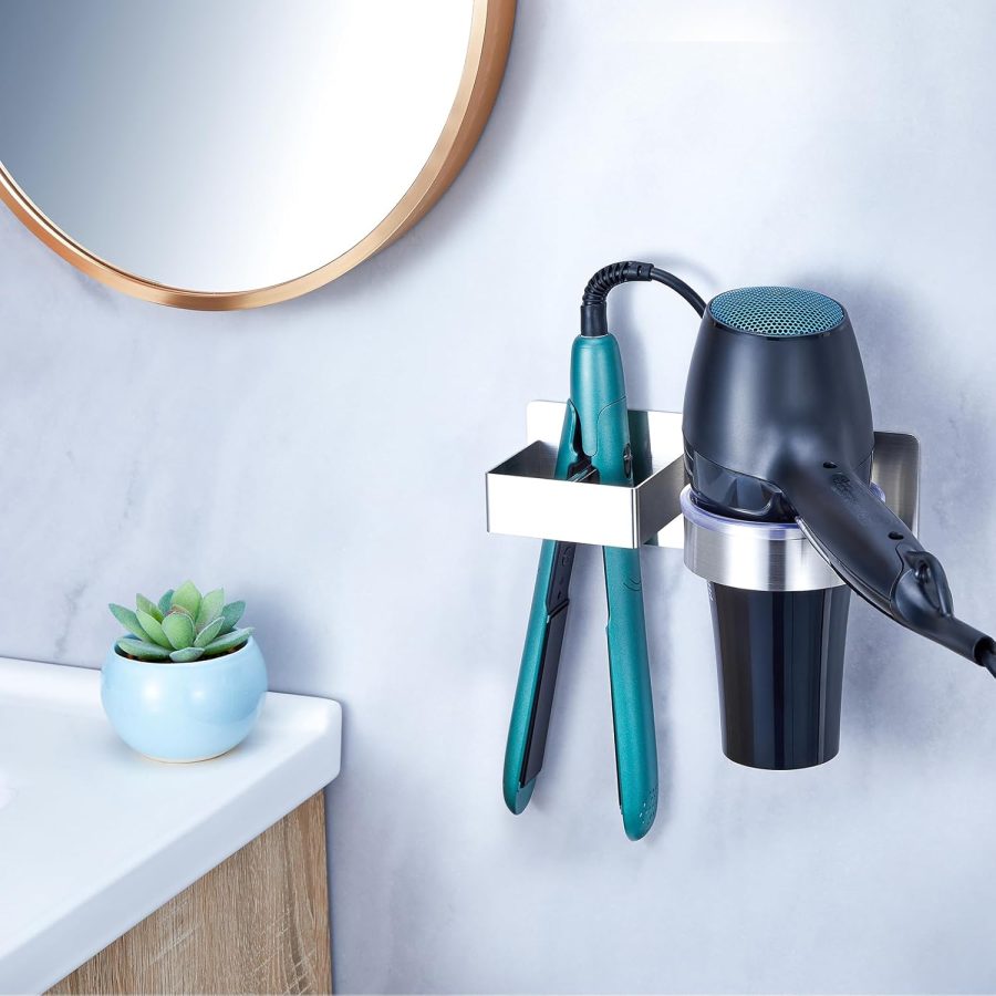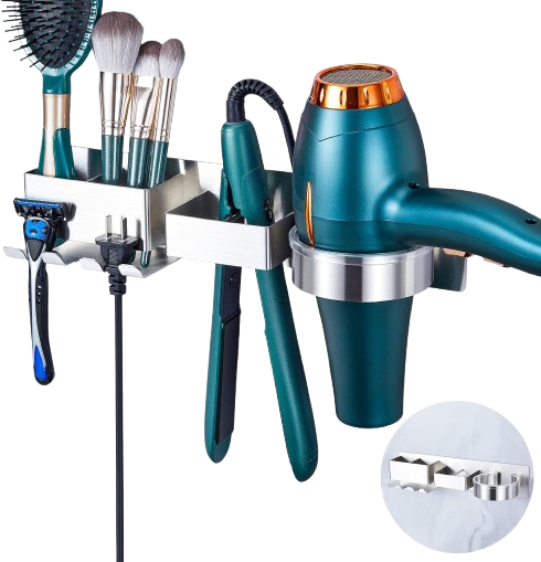 Certains modèles regroupent le sèche-cheveux, le lisseur et les câbles dans un même support, ce qui est particulièrement utile dans une petite salle de bain où chaque centimètre compte.