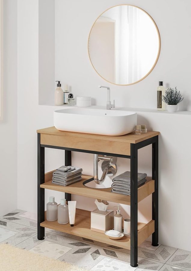 C’est l’un des achats les plus intelligents dans ce contexte : vous ne perdez aucune surface au mur, vous gagnez du rangement et votre salle de bain paraît plus grande.